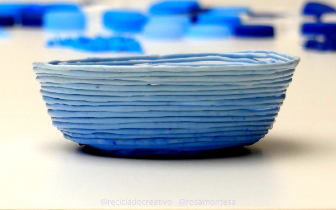 Cesta reciclando tapones de botellas de plástico con Preciós Plàstic Valencia
