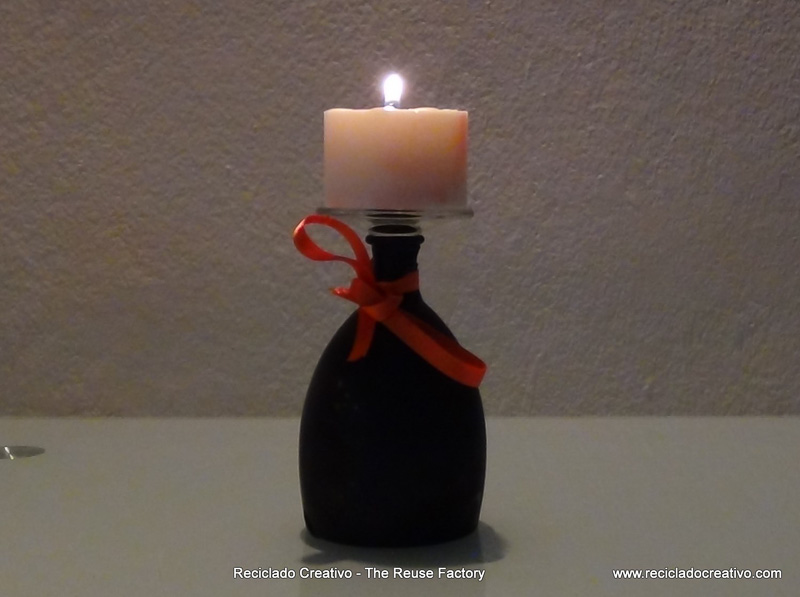Copas de vino convertidas en portavelas. Wine cups into candleholders