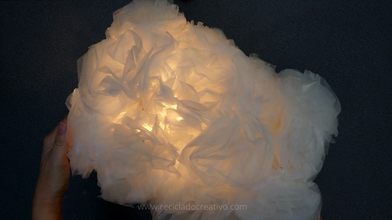 Lámpara hecha reciclando bolsas o plástico de embalar