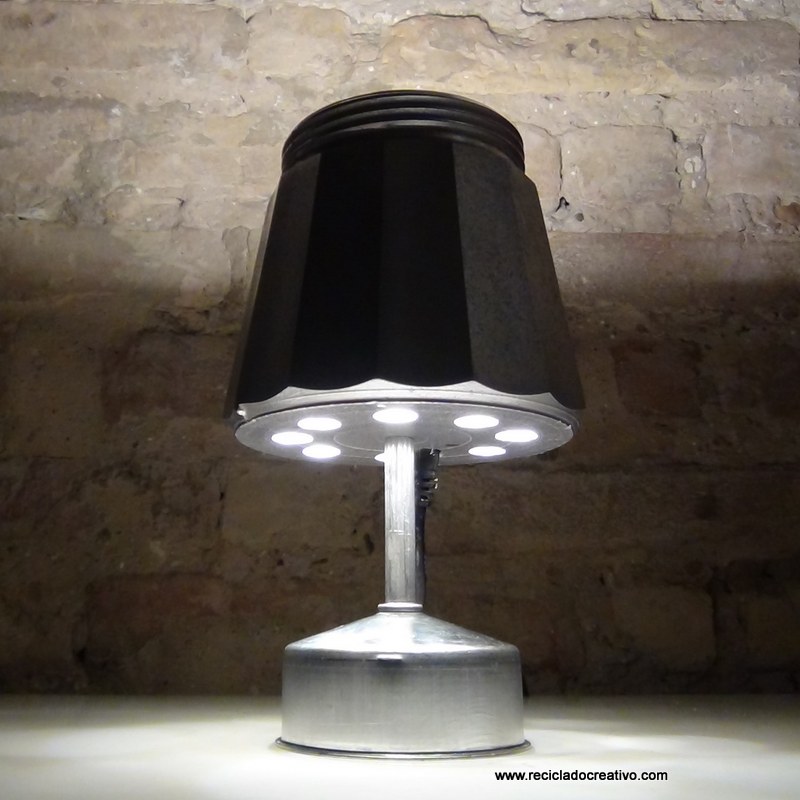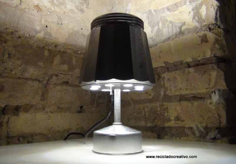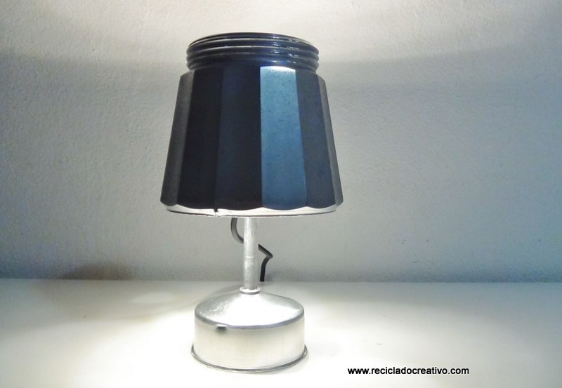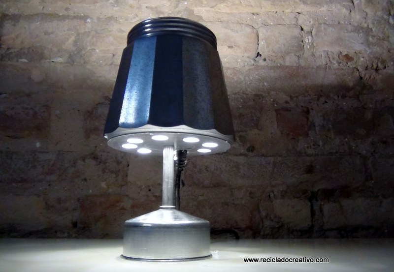 Lámpara realizada con una cafetera italiana tipo Bialetti