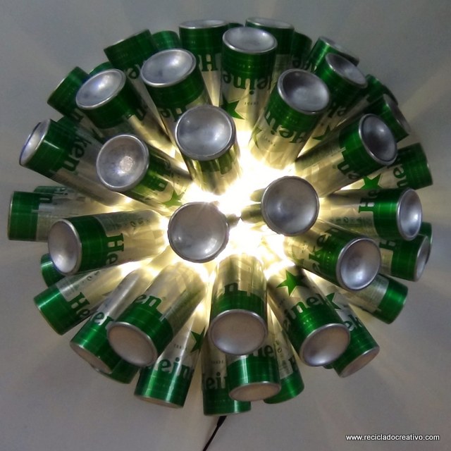 Lámpara realizada con 50 botellas de cerveza.