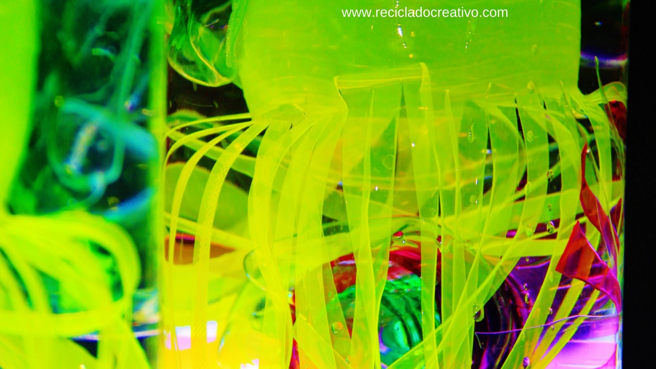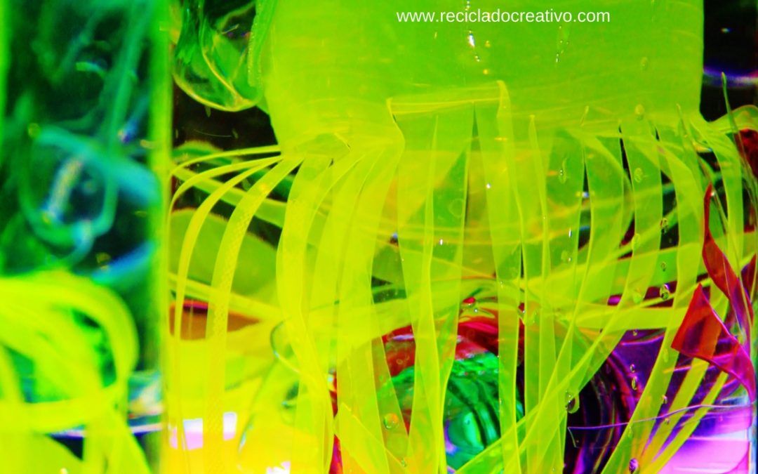 Medusas realizadas reciclando botellas de plástico, y embotelladas