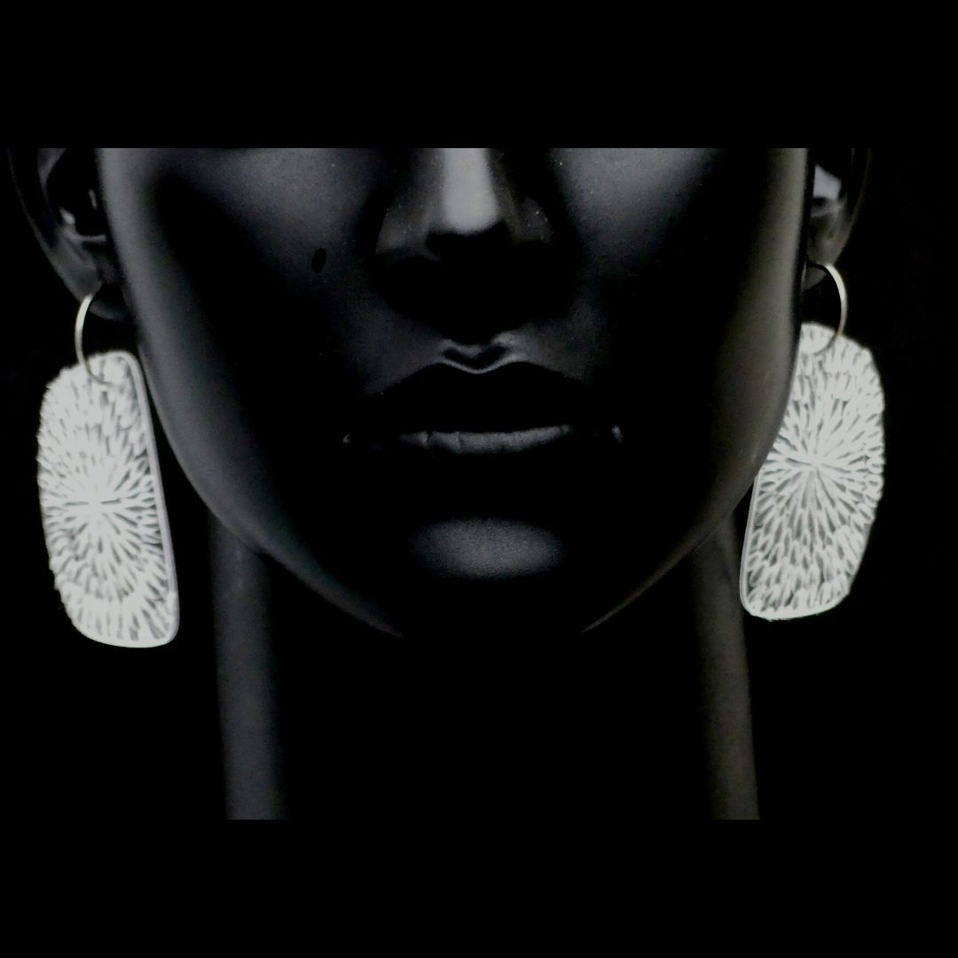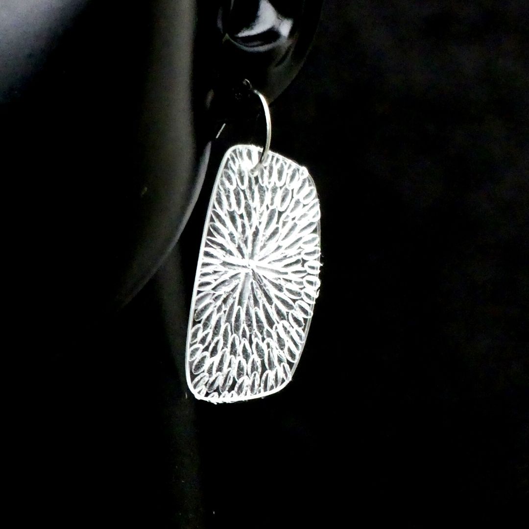 Estos pendientes tienen un colgante realizado a partir de los cristales (talcos) que llevan las monturas de las gafas antes de poner los cristales/lentes graduados.