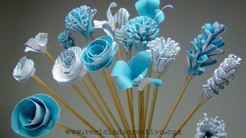 Flores con cartón – papel reciclado
