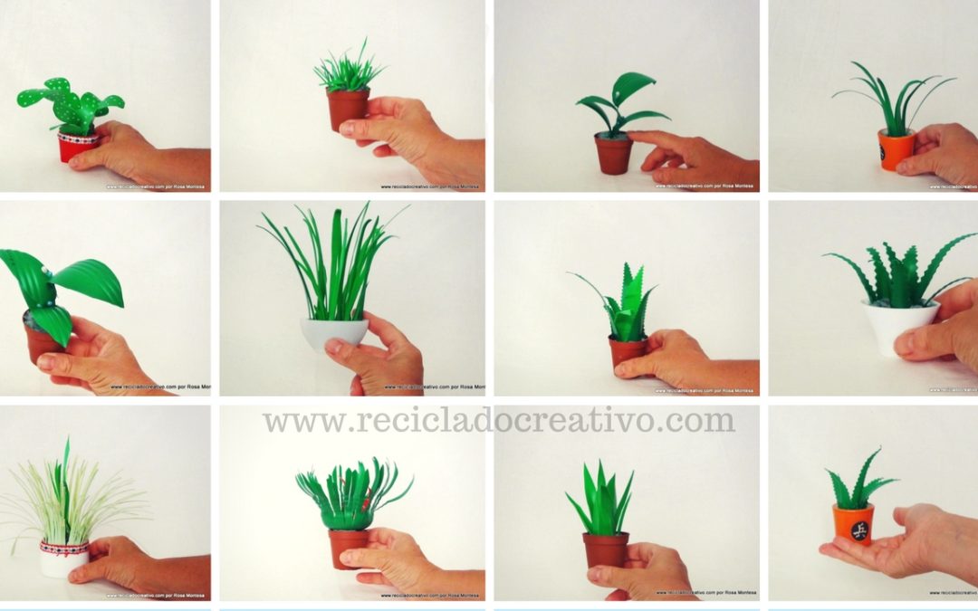 Miniaturas de plantas realizadas utilizando botellas de plástico recicladas