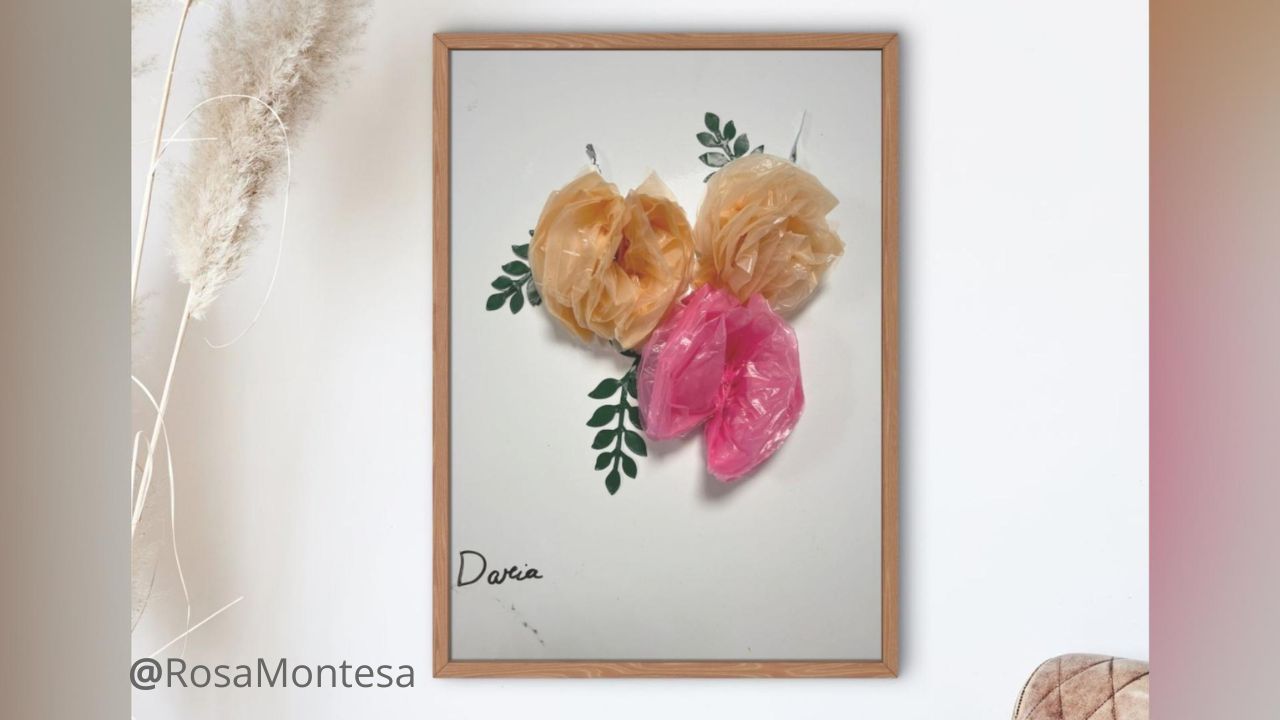 Las flores fueron elaboradas a partir de bolsas de plástico limpias y reutilizadas, bridas, alambres e imanes adhesivos. Todo el material fue cuidadosamente higienizado, cortado y preparado previamente, asegurando un entorno seguro y accesible. Este enfoque no solo fomentó la creatividad, sino también el respeto por el medio ambiente, en una actividad que une la conciencia ecológica con la expresión artística.